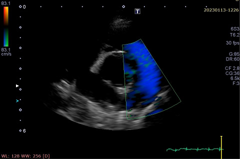 手術前(カラーモザイク状に見える部分が動脈管の血流)