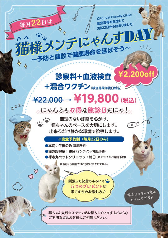 毎月22(にゃんにゃん)日に「猫様メンテにゃんすDAY」を開催します!