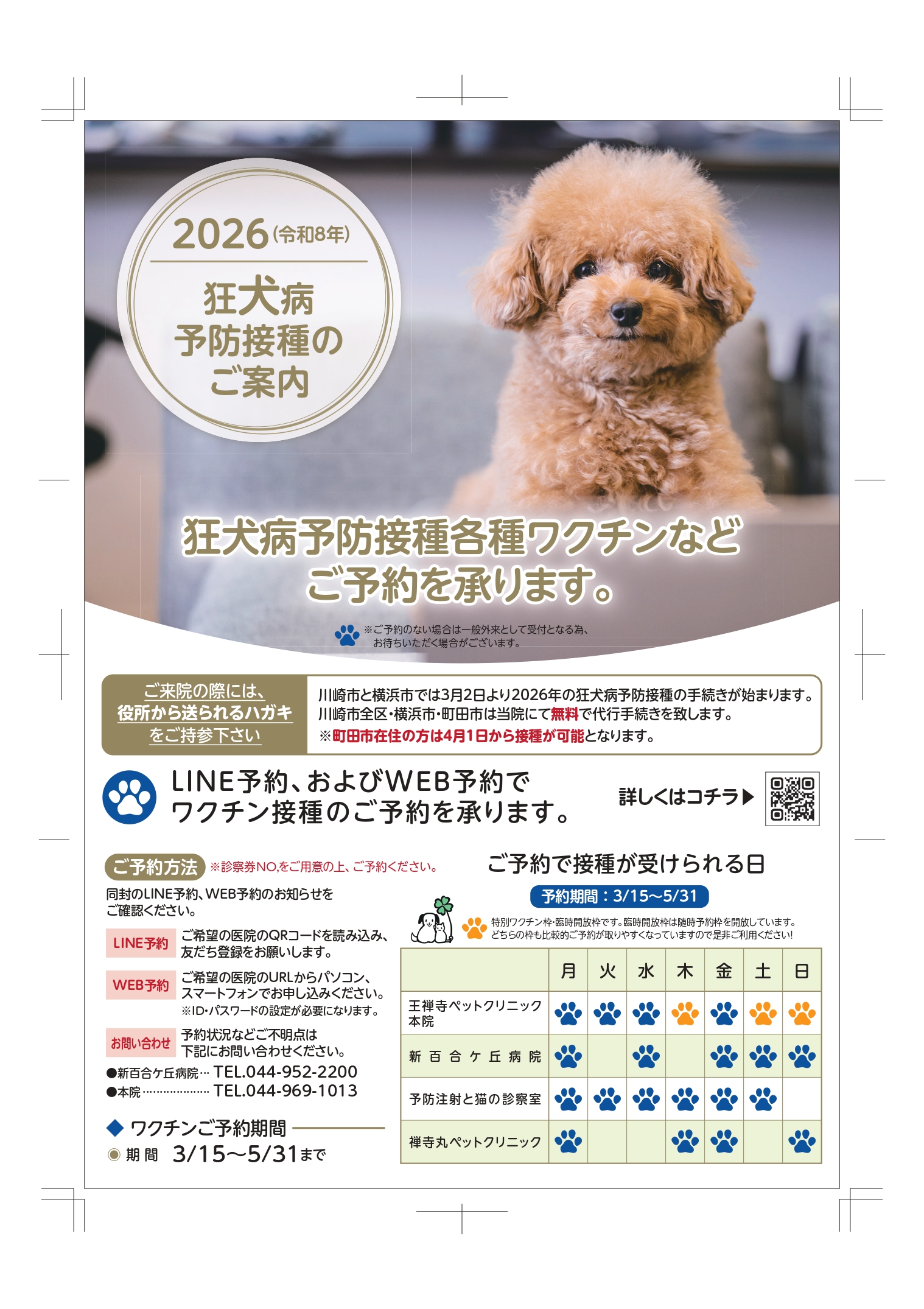 2026年の狂犬病予防接種がスタートいたします。川崎市・横浜市・町田市にお住まいの方の継続手続き代行(役所への提出手続き)をいたします。